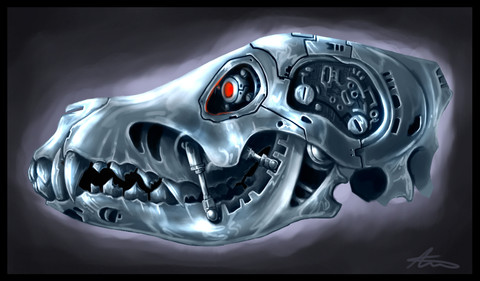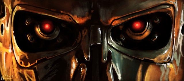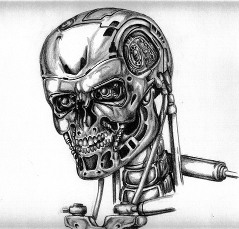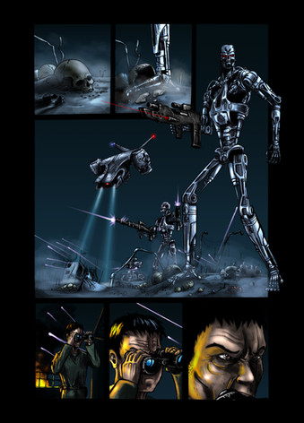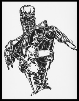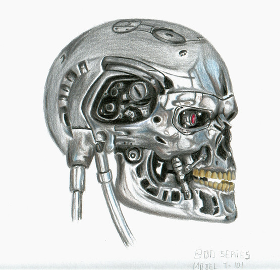 ok, I know I have many T-101 drawings here but I had to to a last one, now that I know a bit more of digital painting. Here we can see a fresh terminator out of the line of assembly, he's powered on and ready to "terminate" the enemy.download for extra detail on the terminator