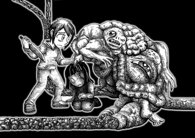 Mixed media on paper (watercolor/black marker/pencils)