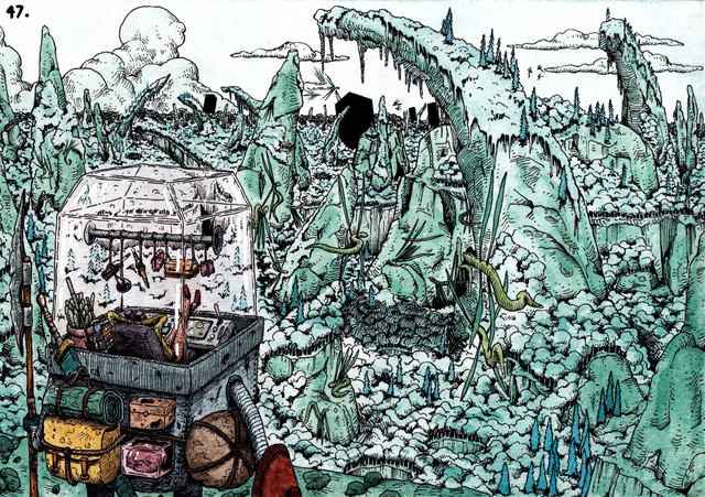 Most of the stars in the projection Mr Long Nose inhabits died a long time ago, and the land he scouts is desolate and barren, this universe is close to completing its life cycle and Mr. Long Nose can’t wait for the time this decrepit panorama is reborn among the great fires of a singularity.