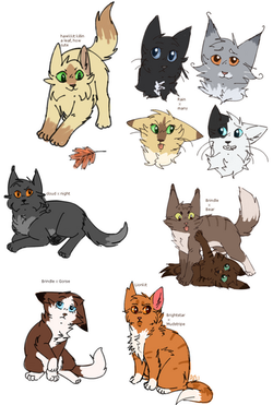 aaaaand maybe apprentices aswell... idfk, i made leafkit/pool and squirrelkit/flight look a bit older... oh wellhere we got a baby lionheart (lionkit), i imagine him being like a clump of floof as a kit cuz of his thick fur around his neck bahh so coot
