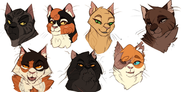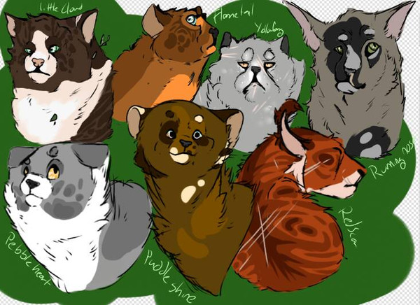 WAAAA, this took so long to color (coloring with mouse is a damn nightmare), and i'm sorry bout how messy some (especually leafpool) look - my mom was annoying the living hell out of me and i basically just made the sketch die by being irritated i can't rlly explain what happended