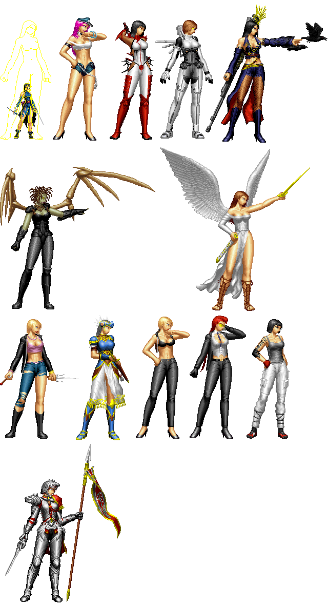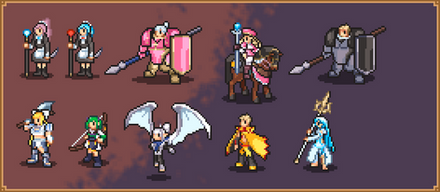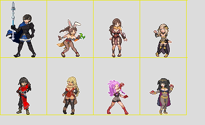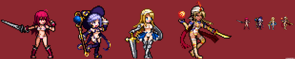 Recent Sprites I made. They are made in random order though - and some details might be lost but ehh, they should be easy enough to be recognized.Works well for Bastard Bonds game. It started from there after all.