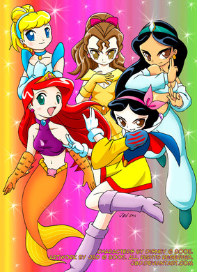 A complilation of the first six female members of the Disney Rangers team!from left to right.