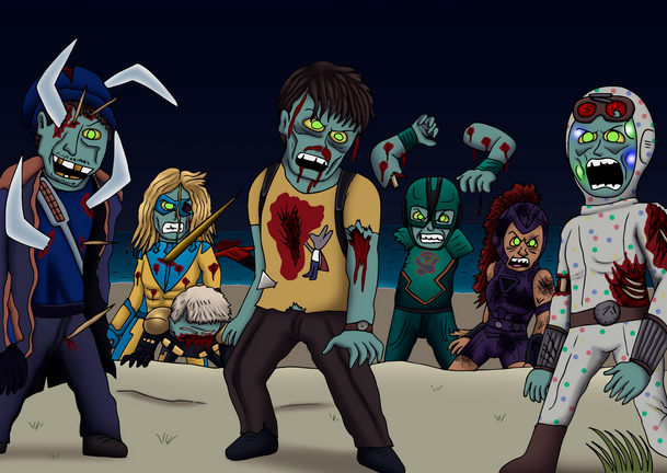 Around this time of year I cant help but want to draw halloween themed and scary pictures. A twisted yet fun idea I had involving power ranger zombies. Jason and kimberly fight legions of their fallen friends.Related content