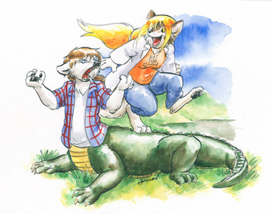 #anthro #commission #daddy #dancing #daughter #dinosaur #happy #hyena #laughing #pencilart #sanssouci #traditionalart #watercolorart