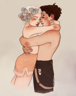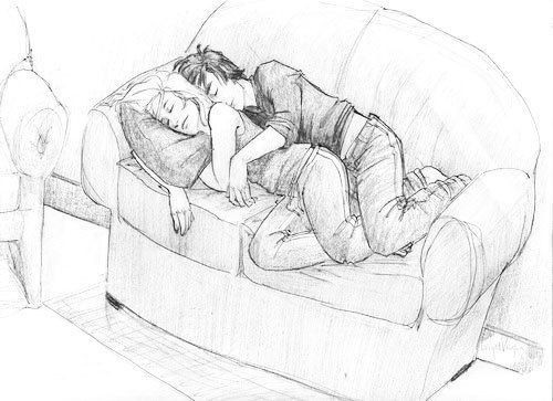 HOLY HELL HOW DID I FORGET TO POST THIS ONE!?!/11Anyway, I drew this last winter for Adage . Jack and Claire, POST-the first time they ever had sex, when suddenly all they did was snuggle all the time always. Kind of akin to the Hold drawing, except it's probably mostly for Claire. I will wax bad poetic about how they broke down the last barrier between them and let the love floooow. And you could wax horrible innuendo now that I've set it up for you.