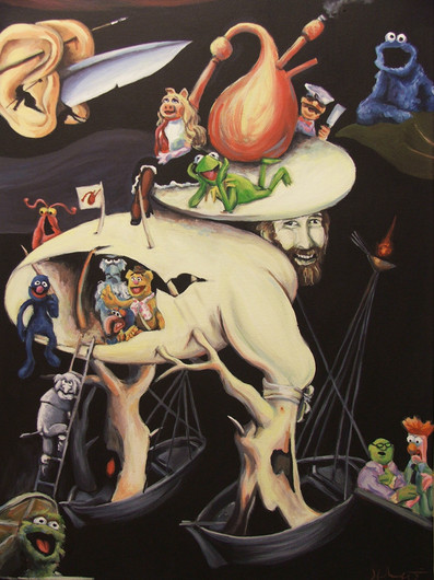 Almost reminds me of an adam and eve kind of theme, especially with the snake in that apple tree. The rabbit seems to be symbolic of something higher no?