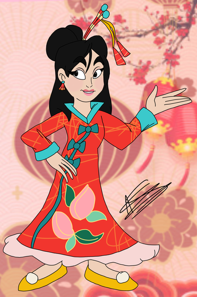 Here’s an old request drawing done by and whose credit goes to Rac20138.It’s a drawing of a lesser known character from Disney’s Mulan franchise. She is the village girl who was seen training with Mulan during the song “Lesson Number One”, along with other girls. I named her Jia Li.