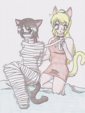 Buuut, awesome drawing. ^_^ I like how the socks are uncovered, and the gag is part of the whole wrapping. Thanks for sharing.
