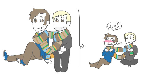 I love how Dean is all possessive of Cas and since the Doctor's squeeing over him Dean's getting annoyed >.< It's just so frickin cute! heheh Johns tiny *u* (who cares if the heights are off its adorable)