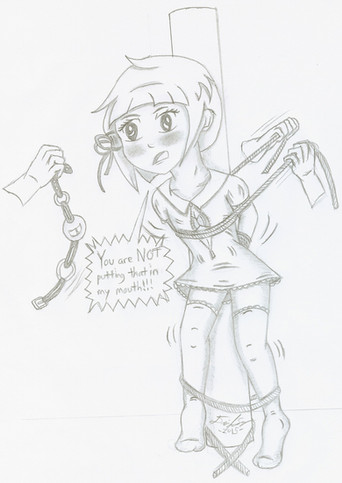You know how it is, You decide to get rid of all your unwanted stuff by having a garage sale. Like that old tea set your Mum got you forever ago and the really old lounge chair that's seen better days. You also decide to sell your lazy ass roommate who refuses to cook or clean or do anything really. So you sneak some powerful knock out pills into her food and dress her up as a pretty french maid. You then tie her up to the telephone pole, in front of your house and bang in a for sale sign next to her.