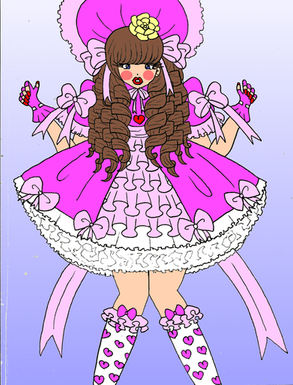 Robert was scared and ready to escape Cara's living room, but then suddenly collapsed into his seat due to Cara drugging his Zombie. He then awoke several hours later in a daze. He stood up to realize Cara and Sarah were taking pictures of him on their phones. Robert tried to hide his face to discover pink frilly ribbons attached from his ankles to his wrists limiting his reach. He then noticed the pink gloves and his black mary jane shoes complimented by pink polka dot stockings running up his legs. The dress was hard not to notice with it's pink glow, fluffy petticoats and plenty of bells. He was also locked into the ribbons, shoes, and dress. The girls then showed him a mirror where he discovered his new lipstick shade, blush color and eye shadow. His new wig was also very "cute" as Sarah put it. Most uncomforting thing Robert found out was a think feeling near his crotch area. The girls then explained "Well doll, It seems you've started to feel the diaper. We put it underneath your new panties because we don't want anyone to know that you're a big boy!"