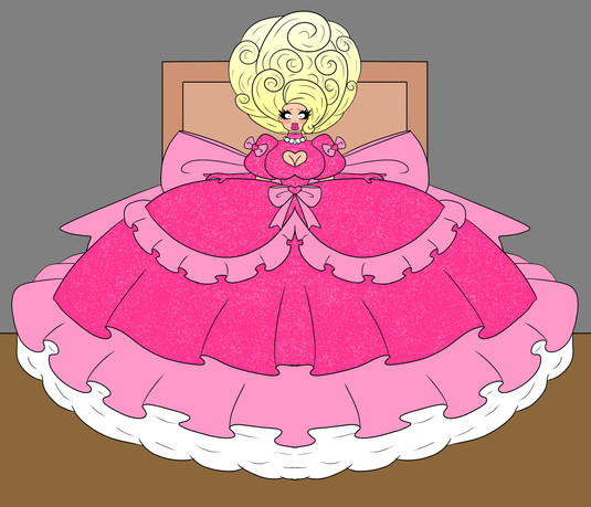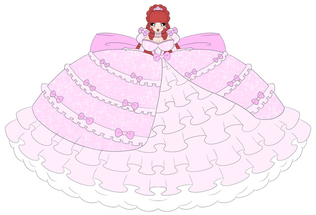 She makes a wonderful princess. Β I would melt into that role but your characters always seem to find it a bit more difficult to do that. Β Super wonderful dress and drawing.