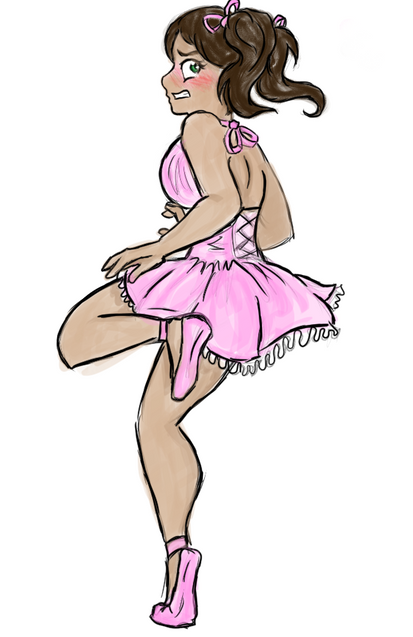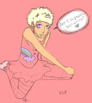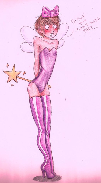You just love putting boys though embarrassing situations. xD I don't think this is bad, I just think the neck is a bit big and the head looks a bit oddly shaped. Oh well the Fairy tutu princess, will have to dance his way out of this one.