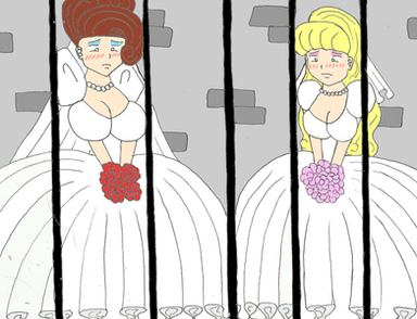 As humiliating as it must be to be all of his fellow male prisoners' minuet partner, it's still better than having to face a Marie Antoinette-like fate (as a hated royal) at the hands of the angry revolting peasants outside the prison walls. Β Uh oh, sounds like someone's striking up the harpsichord again, Princess. Β Grab your tiered skirts and petticoats, and rush to your starting dance position. Β Hurry!