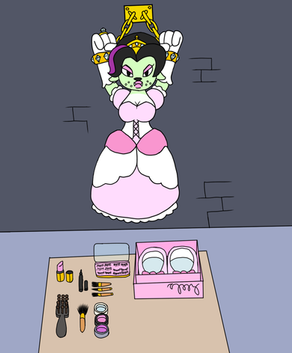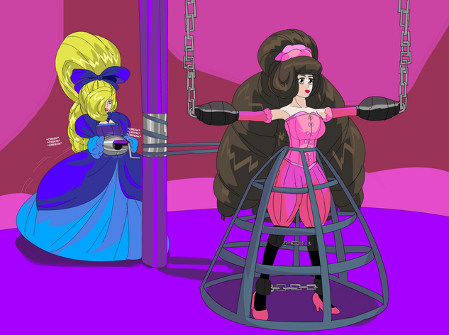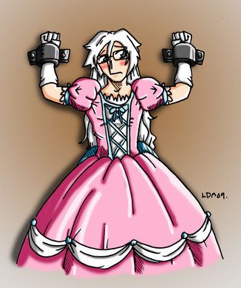 Darned...*removes sunglasses* Dat's the girliest dress ah have yet to see in dis here gallery, ma'am! Not pleasant news for the captive fella, but when the circumstances are so funny, no one but him's complaining! Should have known that "level up" would only result in a downgrade of his dignity, ha! Well goin'!