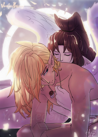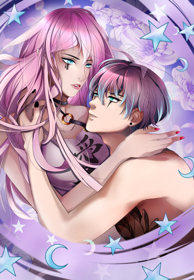#digitalart #fanart #anime #originalcharacter #couple #cuddle #cute #demon #sunset