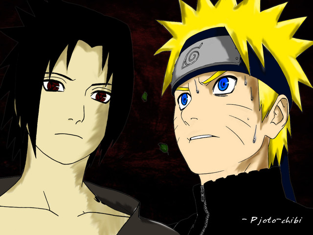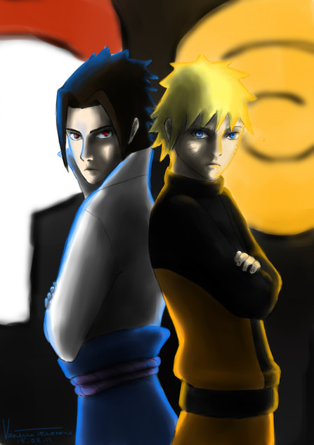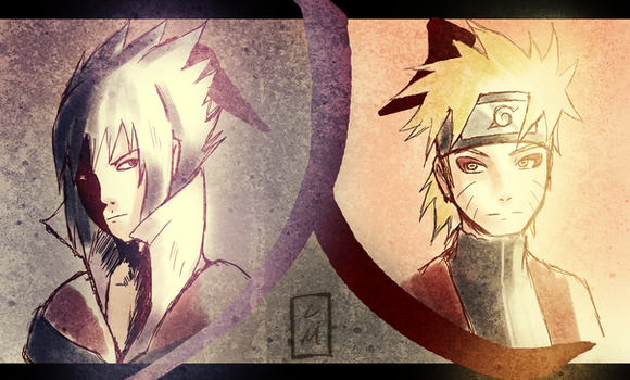 Okay so I'm just practicing my new style a bit... xP And since I rarely draw either Sasuke or Naruto I decided to make a drawing featuring those two >w>And Sasuke never stopped bitching cause I can't draw in weird angles! >3< (Didn't take much time on Sasuke....)