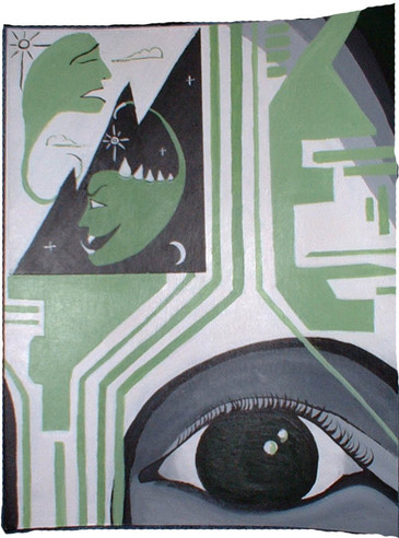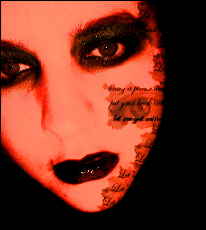 Used: my webcam... and myself... and make up.I took a bunch of pictures of myself after dolling myself up in my darker side... manipulated the shit out of them, and stuck em all together in a composition that *hopefully* works out alright. Me likes the pop art! Andy Warhol's a genius. haha... k. Thanks for lookin'!!!