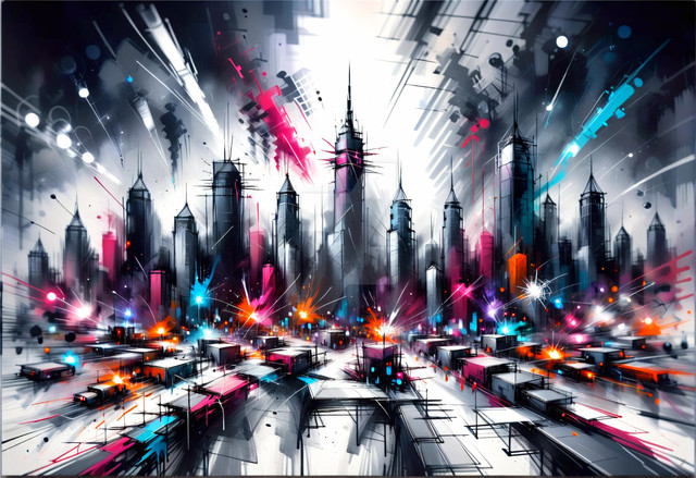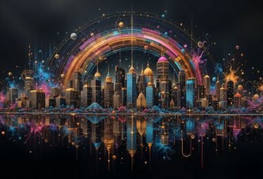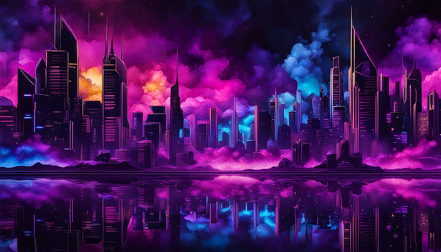 #abstract #aesthetic #cinematic #cityscape #colors #creative #digitalart #energy #fog #futuristic #glass #glowing #lights #metropolis #modern #neon #nightscape #prism #reflections #skyline #skyscrapers #splashes #surreal #urban #vibrant