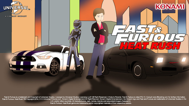 Here is a man driver avatar and his car "2015 Ford Mustang GT" and the featuring crossover of Michael Knight and his car "1982 Pontiac Firebird Trans Am K.I.T.T. (Which is stands for Knight Industries Two Thousand)" in Dubai from Konami and Universal's fanon game Fast and Furious: Heat Rush, This is the new splash screen and loading screen on October 2022.Fast and Furious and Knight Rider belongs to Universal