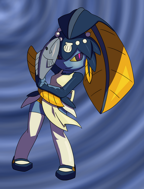 You mean the fish pony tail coming out of her head?