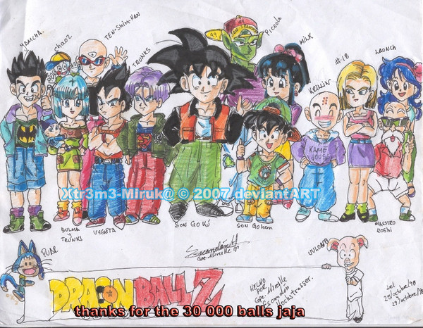 (2008, August 28) Art Media: #2 pencil, gel pen, & colored pencilsCan't really think of anything for my 5000 hits, except for this "sentai-inspired" dragonball artwork that I call the "5-man Saiyan Rangers". Sort of done in a hurry because I've more things to do. I hope it looks okay though.