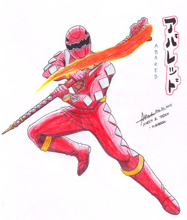 Right inscription: Red hawk is Choujin Sentai Jetman's leader.