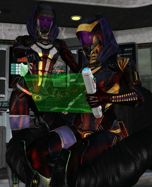 "How come you made your visor dark?"brought to my attention that one of his OC's Aleen'Zeta had a bit more than a passing resemblance to Miri'Seraph, so of course, it sounds like the perfect opportunity for an OC meeting! :V