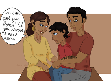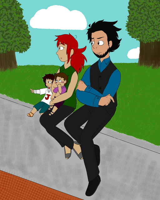 Aiko's intentions went so far as regularly arguing with Romani about letting her raise him to become what the island will need, which is actually what they're actually arguing about in the picture. It took him a few years, but he was eventually able to get her to drop that particular subject. (His plan was to pretend to give in, and relied so heavily on Cranky, still a very young child at the time, weirding her out with the disturbing things little kids say that he only packed a bag with a day's worth of amenities. She managed three hours out of the night before promptly returning her great-nephew to his unconcerned father.)