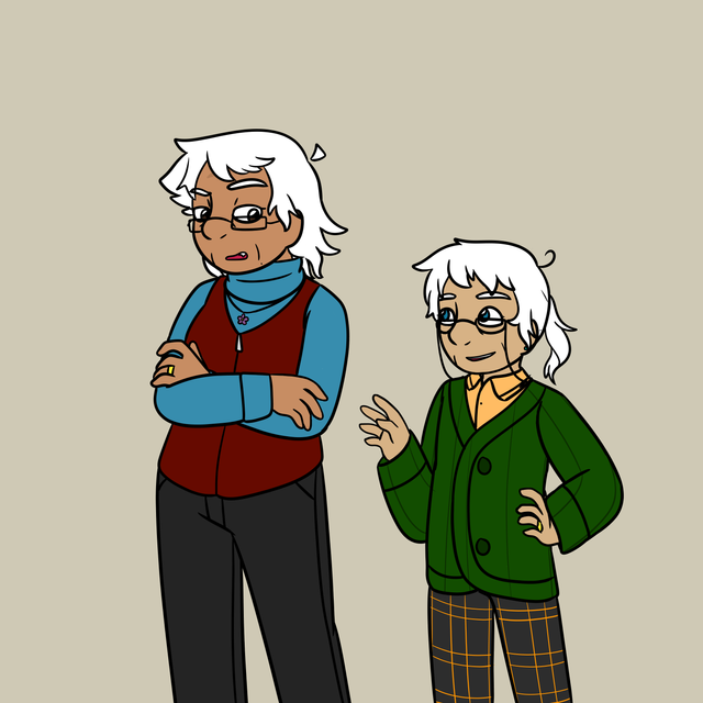 Now, enter Aiko, the older woman seen in this picture. Aiko is one of the village elders in both the JA timeline and the general timeline. Like Grouchy, she's his great aunt through his grandfather Rowan, and is the polar opposite of Grouchy when it comes to him. I actually use Aiko in a lot of the background material I write more to help with my world-building in regards to both the "government" of Kongo Bongo in JA and also trying to expand more on the older family members, but I'm sure one of these days she'll make an actual appearance, and since this is the first time I actually tried drawing her she may change slightly down the line.