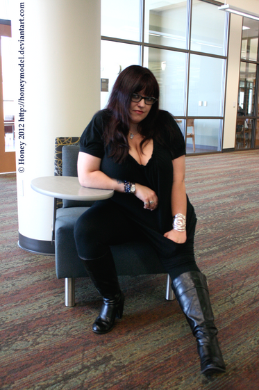 This was taken, well... in a library. Much like the Uncarved Block Gallery, I'm in my common clothes and unadorned on an average day. These photos came to be while I was waiting for props for my next horror shoot. I figured, "why not?" I've always wanted photos in a library.