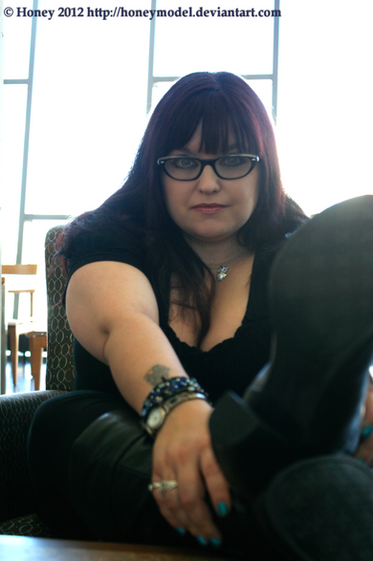 This was taken, well... in a library. Much like the Uncarved Block Gallery, I'm in my common clothes and unadorned on an average day. These photos came to be while I was waiting for props for my next horror shoot. I figured, "why not?" I've always wanted photos in a library.
