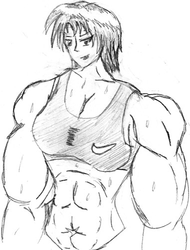 Although I don't like the idea of muscle women just beating up people for fun or non-defense reason, I like that you drew a muscle girl.