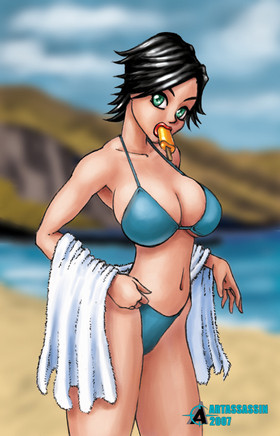 Summer time! That means bikini time!So, here's some bikini goodness. I used some cell-shaded colouring for a change.