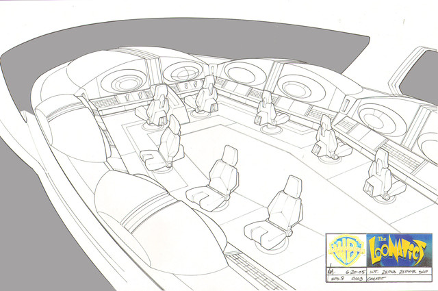 This is a detail of the cockpit/ship concept that I drew for the Warner Bros. 'Loonatics Unleashed' animated series. In Episode 4 the vehicle was called, "Slick's Flying Mini-Lab".