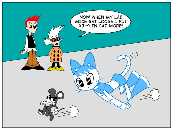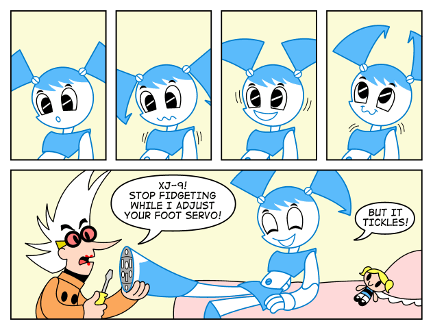 On one of the MLaaTR fanboards I used to participate in I saw everyone was creating their own robots based on XJ-9. I created Alexa years ago as an android with a similar concept to Astoroby which I had seen in my youth. I have always been fascinated with robots having built several small rovers controlled by microcomputers. Building an android seemed like an impossible dream until I saw recent developments by Japanese corporations actually making androids that walk. The three foot high Asimo by Honda is close to what I would want for a personal android (you can actualy rent one for about $170,000 a year).Recent shows like My Life As A Teenage Robot has continued my interest in robots which is why I actively particiapted in the few forums that appeared when the show premiered on Nickelodeon. So it seemed natural to make my Alexa character more like an MLaaTR style robot. She could possibly be the star of my upcoming webcomic.