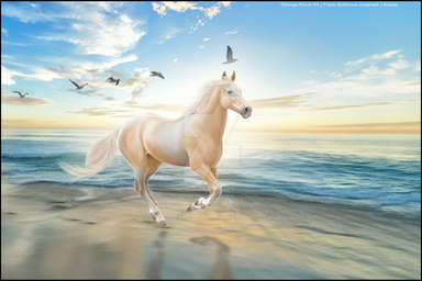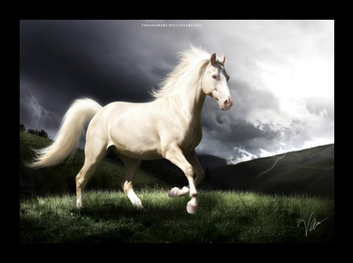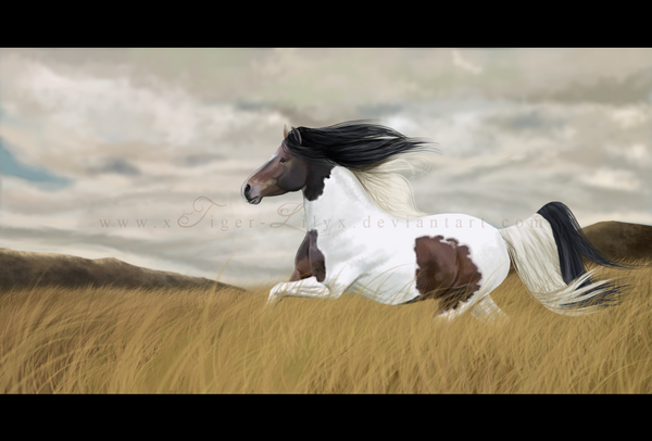 Wow, I love the perspective in the grass, a lot of artists don't even think about that! The sky is very lovely too and of course the horse's pose is great.