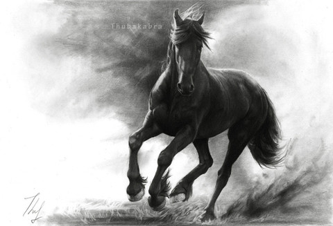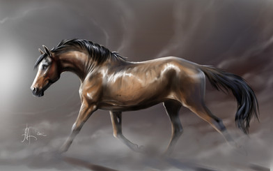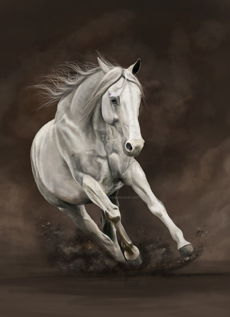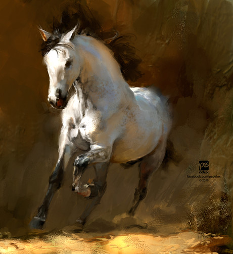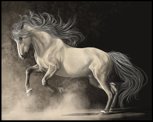 It's about time I faved this. I've seen it all over. I love the details in the mane and tail as well as how vibrant the color of the sand is. It's also interesting how the sand has rubbed off on the legs and the tail. That looks pretty cool. I also like the simple background and how you let the light brown canvas show through. It almost reminds me of a traditional artwork. This is a wonderful piece.