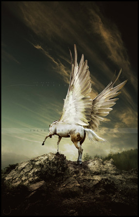 Beautiful shading and perspective on the pegasus, and I love how you made the surface of the sea and the clouds diagonal instead of horizontal. The angle adds such a cool dynamic to the picture.
