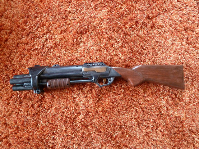 This one is done with a panthertank which fits surprisingly well. It also features a bolt, though I suspect you would want to put it somewhere else. The handle on the pump is from a Lanard Shotgun.