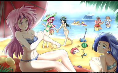 I'm a fan of one piece swimsuits... makes the white mage look more innocent, IMO. But I gave her a two piece too because some people thought it looked better. ^_^