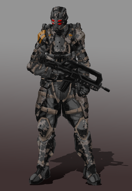 Well done, a clean armor design and nicely applied details like the tactical rig and gear, very original pose too, neutral but not just standing still, a good touch. Hope to see more!