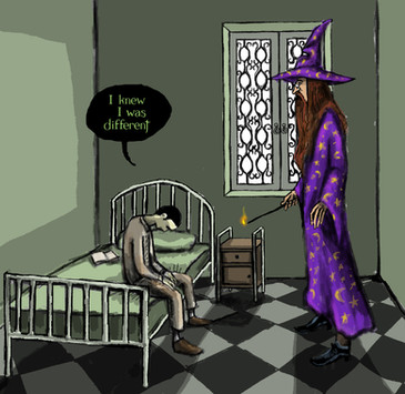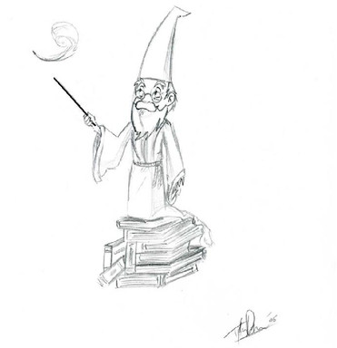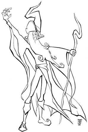 The wizard (wizzard, actually) Rincewind, from Terry Pratchett's Discworld series, which are made of awesome and which you all should read if you haven't already. Doodled at work in the summer.I may colour this in the future.