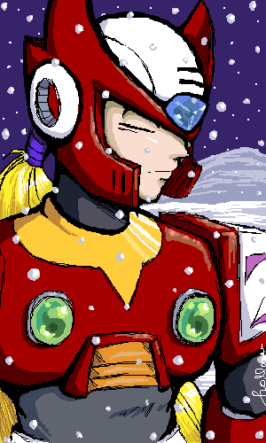 Yeah well, just doodling in OpenCanvas 3. Testing the waters so to speak..dunno why I drew Zero..Anyways, those are shadows of his past or something, I wasn't really thinking of the placement and whatever else. Oh well. xD The extra shine on his armor was intended as well, I was trying to go for a 'spotlight' effect..which kinda didn't work now did it? >.>