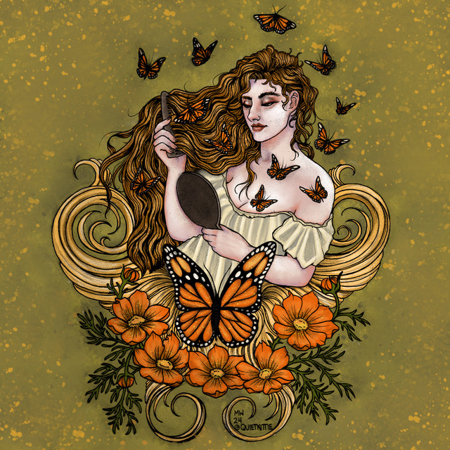 #green #poppy #red #artnouveau #august #digitalart #digitaldrawing #digitalillustration #digitalpainting #flowers #gladiolus #flowersymbolism #greeeneyedgirl