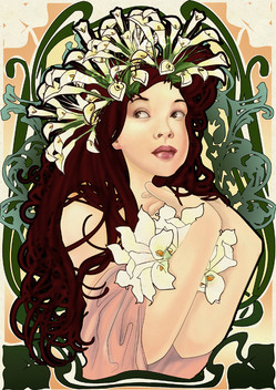#artnouveau #curlyhair #daffodil #daffodils #flower #flowers #green #jonquil #nature #plants #artnouveauinspired #digitaldrawing #digitalpainting #paintingdigital #portrait #drawingdigital