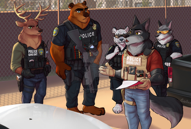 #anthro #corsac #corsacfox #curtain #female #fox #furry #male #mayor #microphone #otter #police #redwolf #standing #suit #swat #vest #wolf #zootopia #armscrossed #multiple #riverotter #trio #anthrocharacter #white_fur #brown_fur #zootopia_fanart