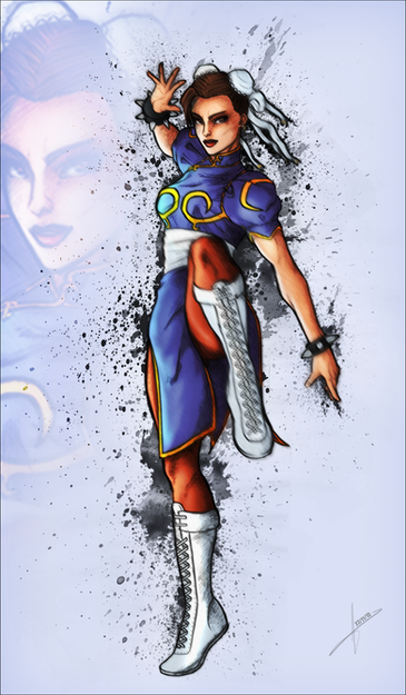 The bright color and action-driven pose is certainly reminiscent of the original artwork and character design of Chun Li. Exciting!
