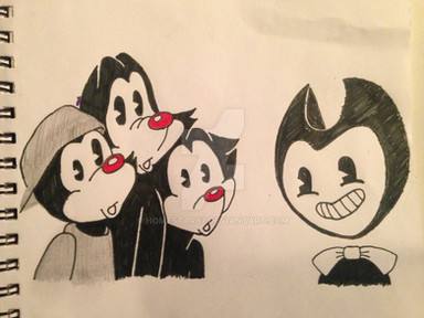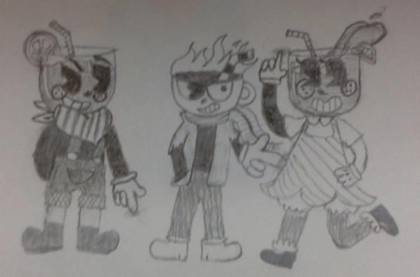 ok, small backstory time:my dad went to visit his brother, so I felt a bit upset and couldn't sleep, so I was looking through the many notifications I have and noticed that Mushy-Sugar-Chan made a new character, and since it was based from a game based off of many old cartoons, and since those cartoons are mostly ink but not related to BATIM, I decided to draw a trio...